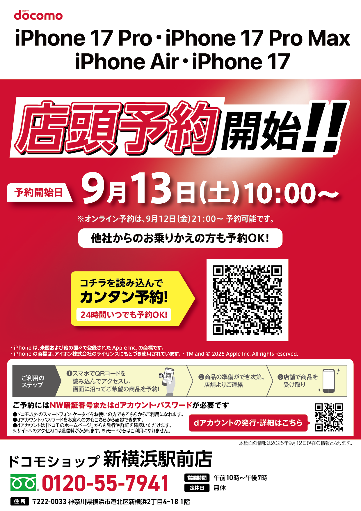 WEBからの来店予約には「dアカウント」が必要になります。 dアカウントが不明な方はお電話でご予約下さい!